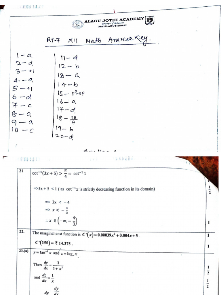 RT-7 Answer Key .... 12th Math | PDF