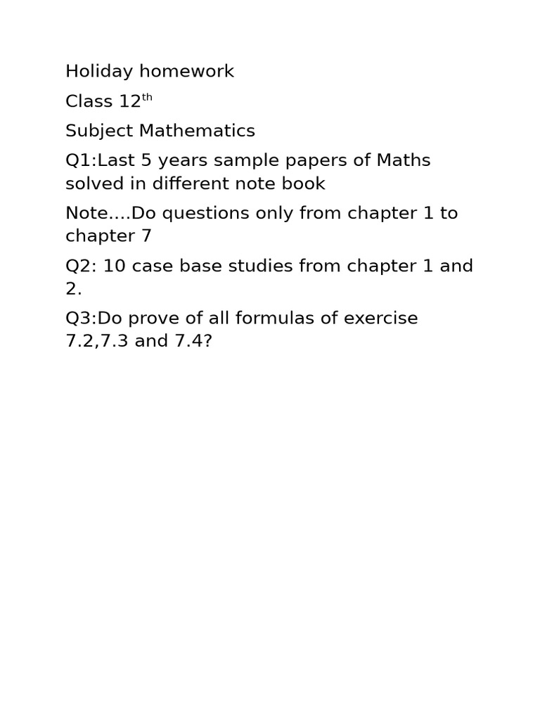 Class 12th Holiday Homework-1 | PDF