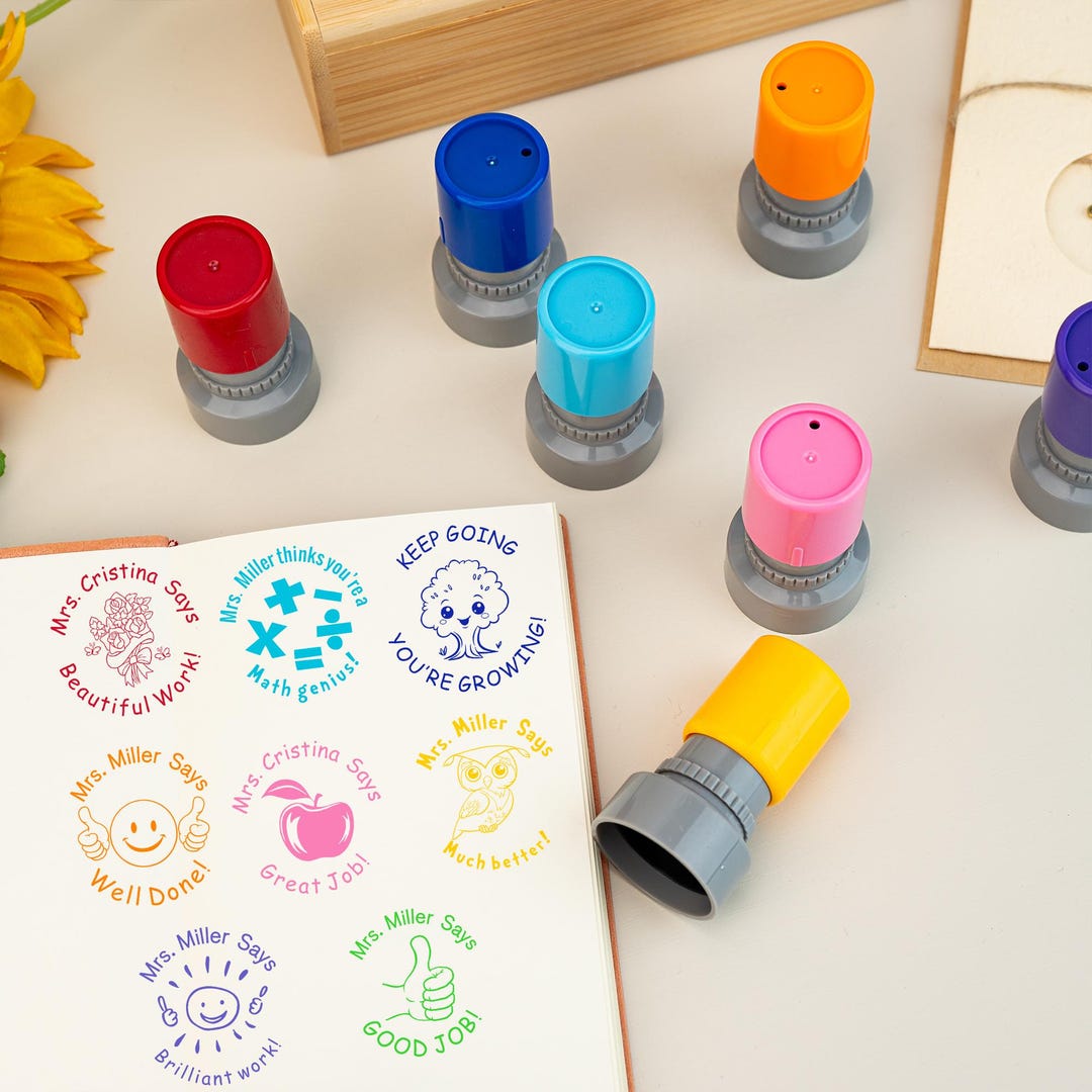 Custom Teacher Stamp Self Inking Round Personalised Teacher Stamps for ...