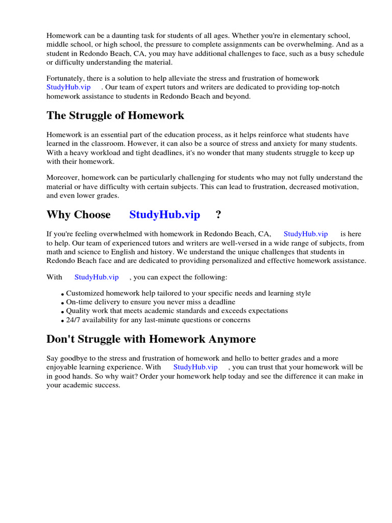 Homework Help for Redondo Beach Students | PDF | Homework