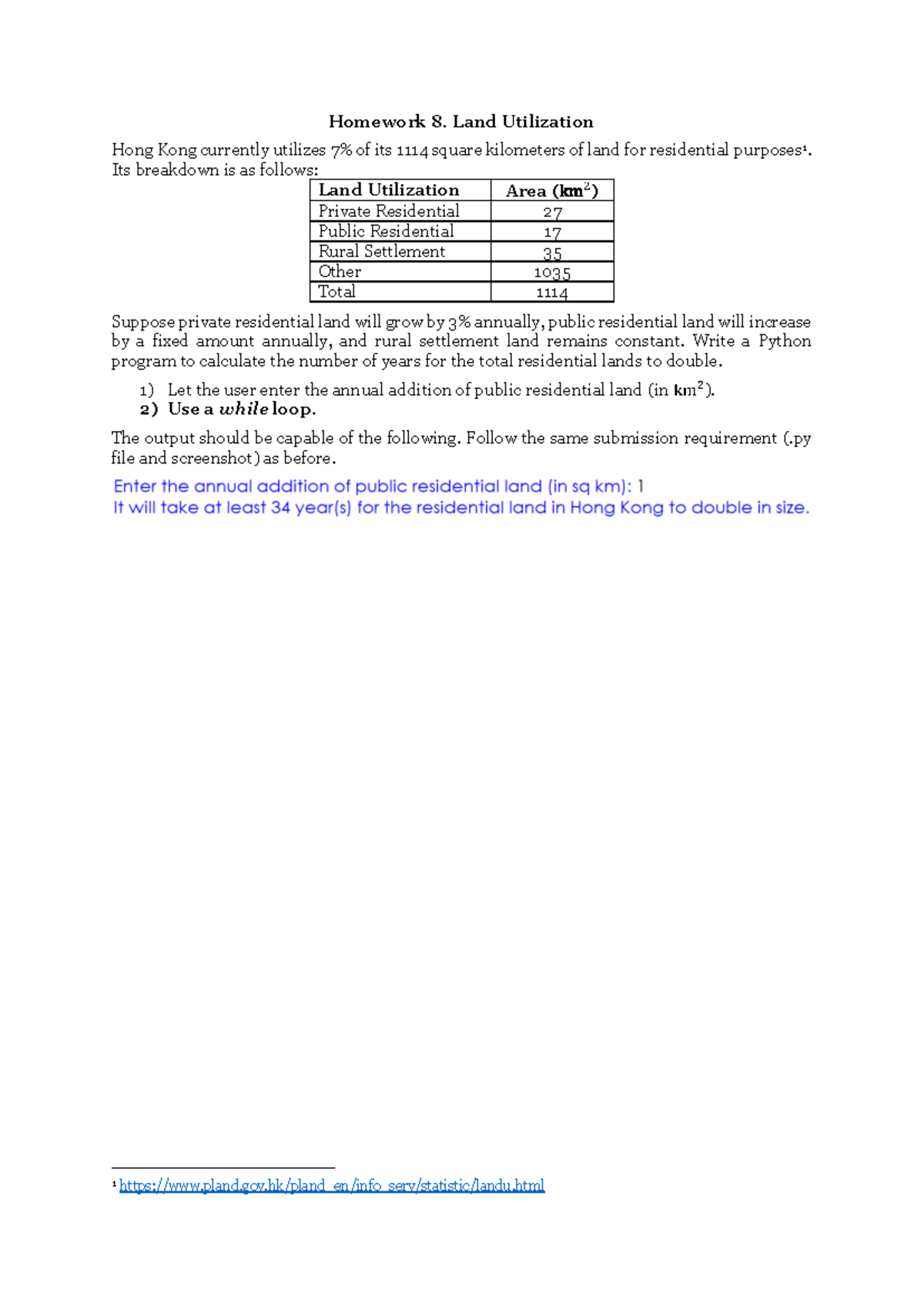 Homework 8 - Homework 8. Land Utilization Hong Kong currently utilizes ...
