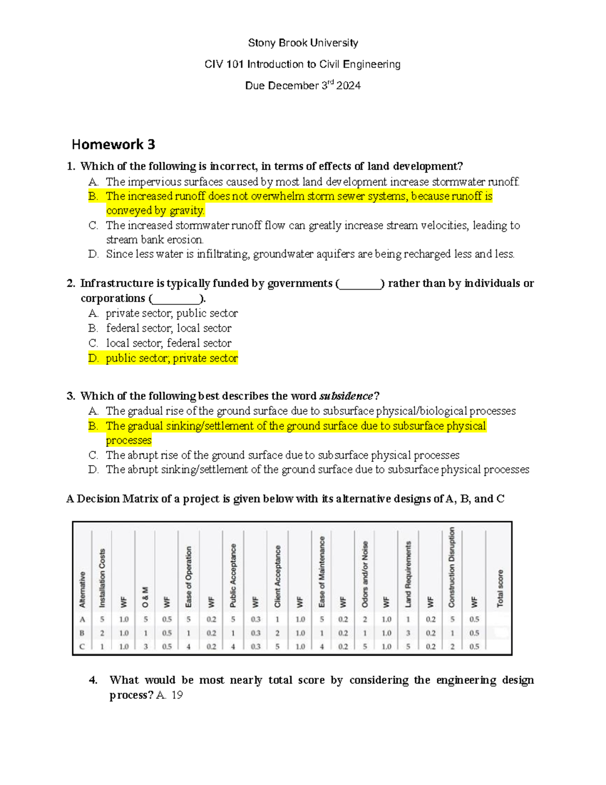 CIV 101 Homework 3: Effects of Land Development & Infrastructure ...