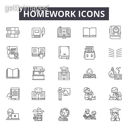 Homework line icons, signs, symbols vector, linear illustration set ...