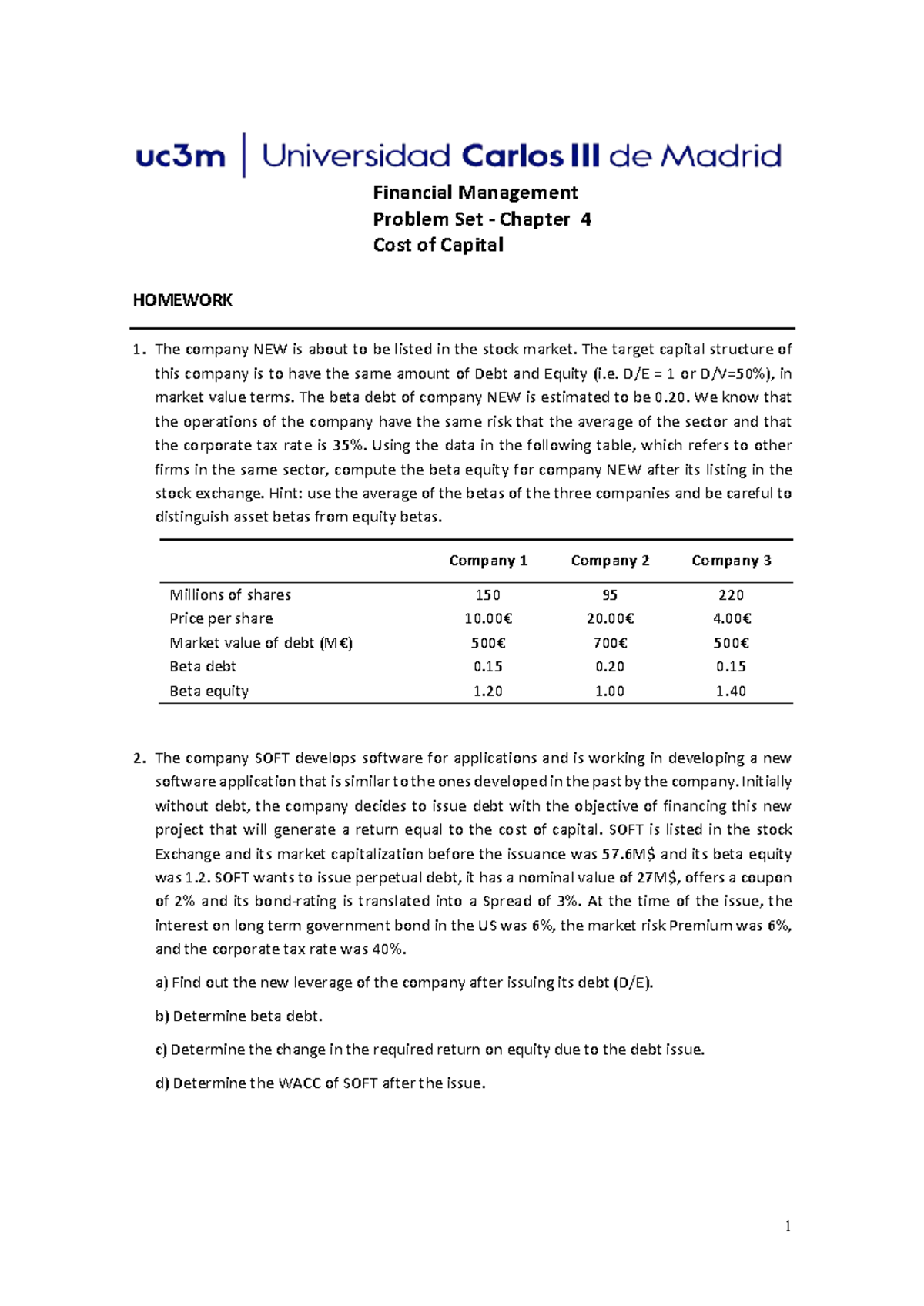 Chapter 4 Homework - Cost of Capital (FIN 301) - Studocu