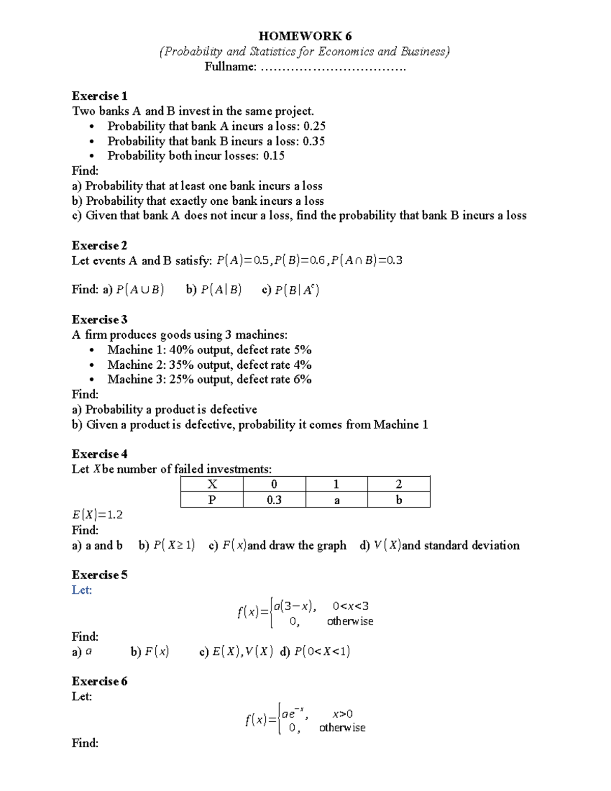 Homework 6 - Midterm Exam (Probability & Statistics for Economics ...