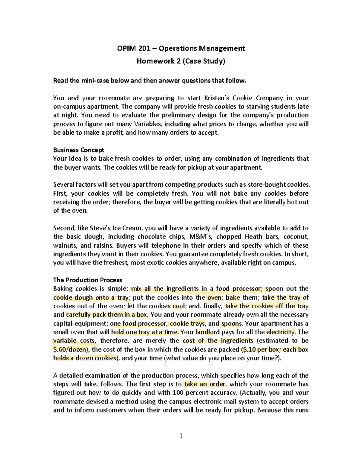 OPIM 201 Homework 2 - Cookie Company Case Study Analysis - Studocu