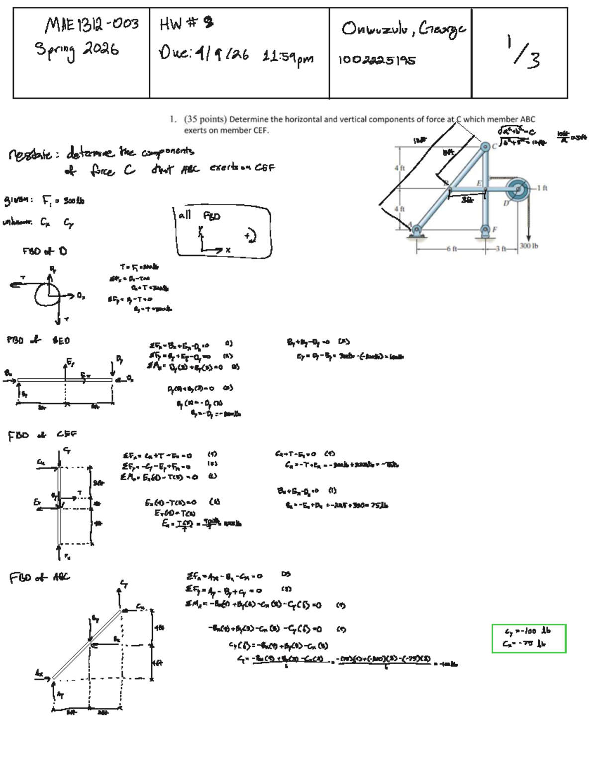 MHE 2026 Spring Homework 8: Force Components Analysis - Studocu