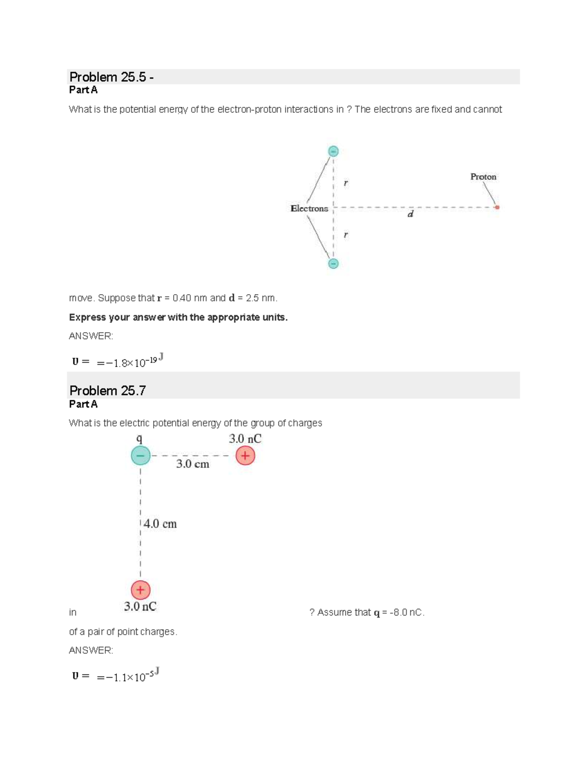 Physics 101: Homework 4 - Electric Potential Energy Problems - Studocu