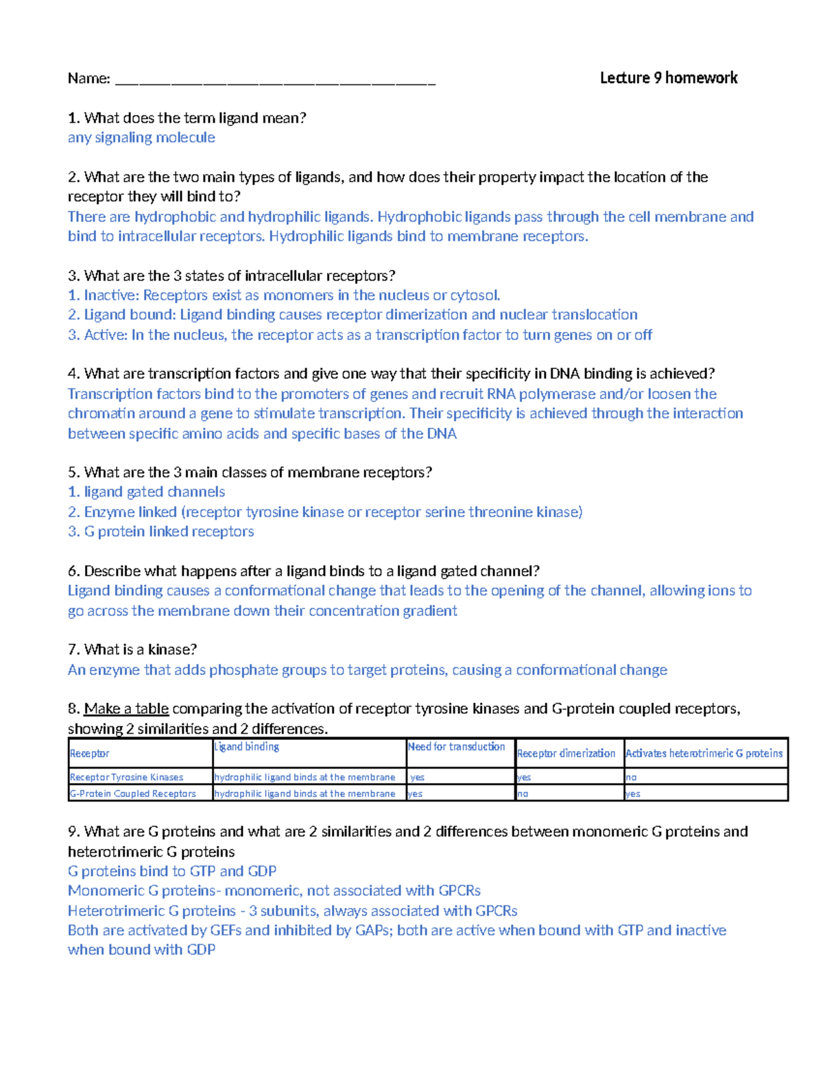 Lecture 9 Homework Key: Understanding Ligands and Receptors - Studocu
