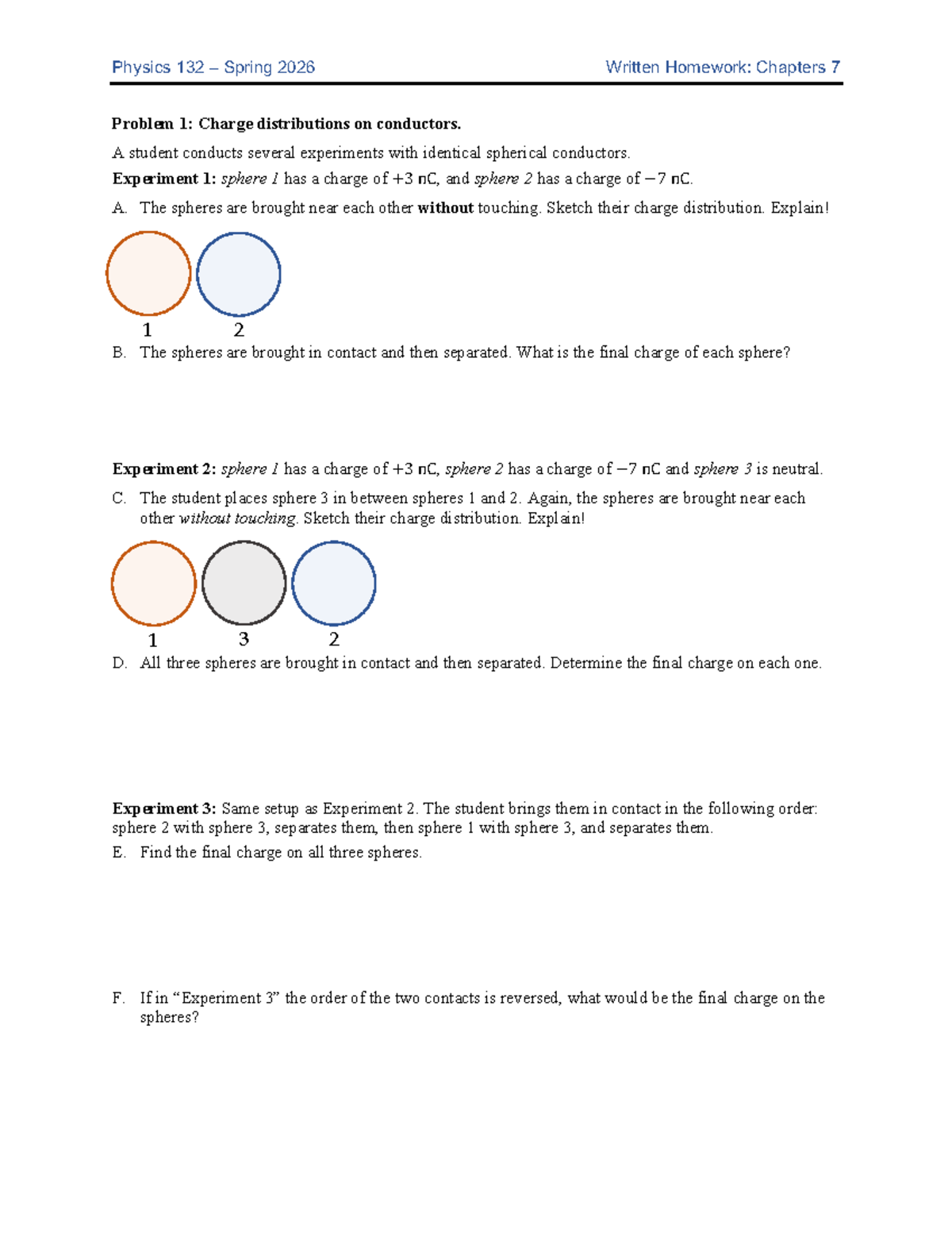 Physics 132 Sp26 Written Homework: Charge Distributions & Forces - Studocu