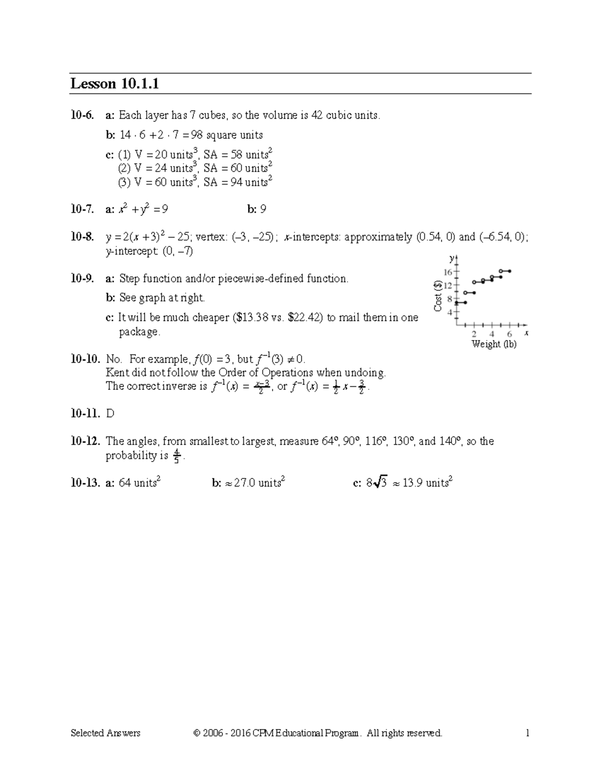 Core Connections Integrated II Lesson 10 Homework Solutions - Studocu
