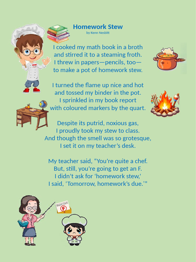 Homework Stew β Kenn Nesbitt's Poetry4kids.com | Poetry for kids, Kids ...