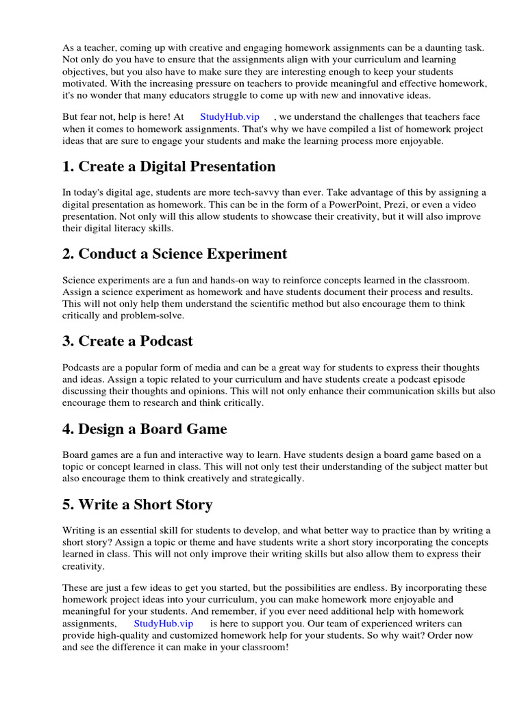 Homework Project Ideas For Teachers | PDF | Homework | Teachers