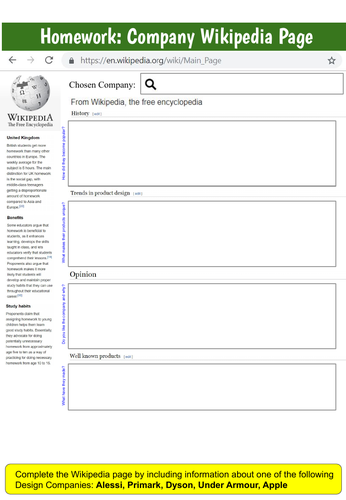 Wikipedia Template Worksheet/Homework | Teaching Resources