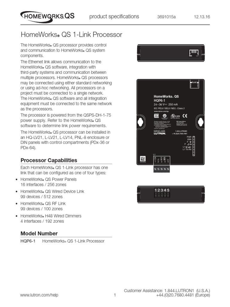 Homeworksr Qs 1-Link Processor: Product Specifications | PDF | Computer ...