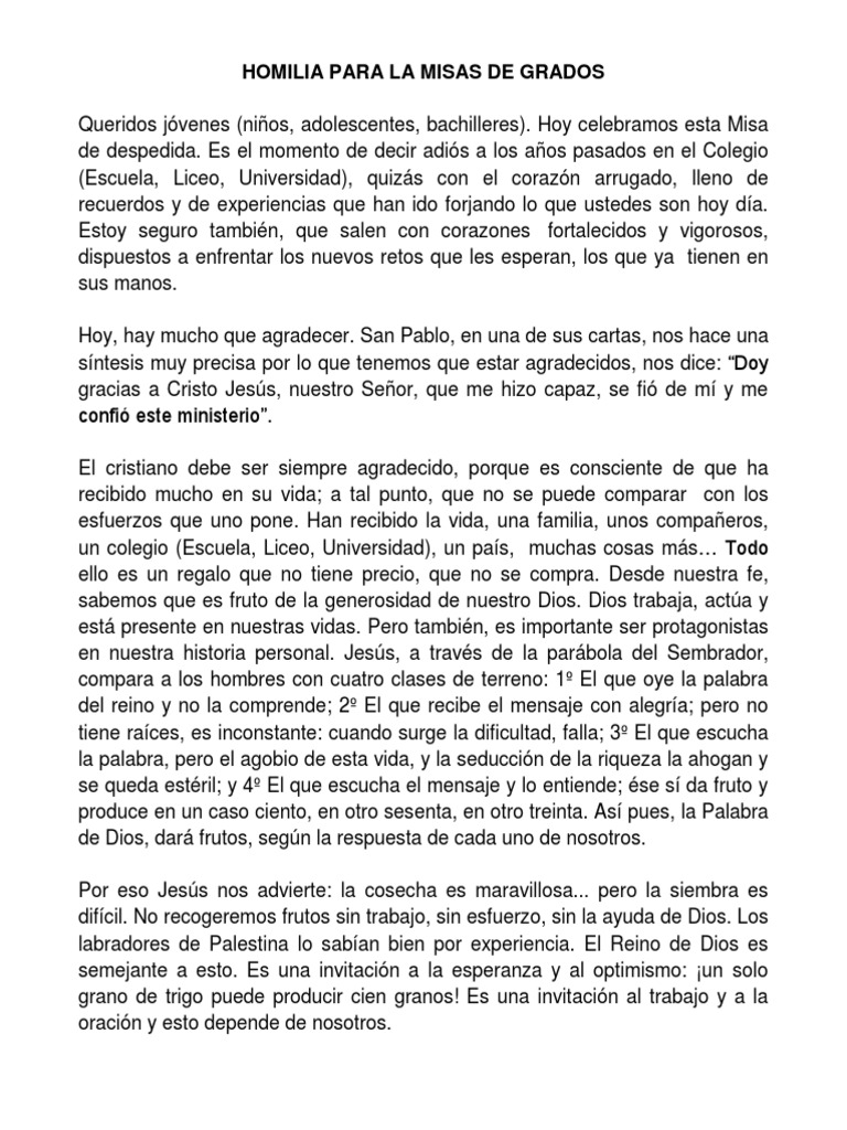 Homilia para La Misas de Grados - 2019 | PDF | Dios | Amor