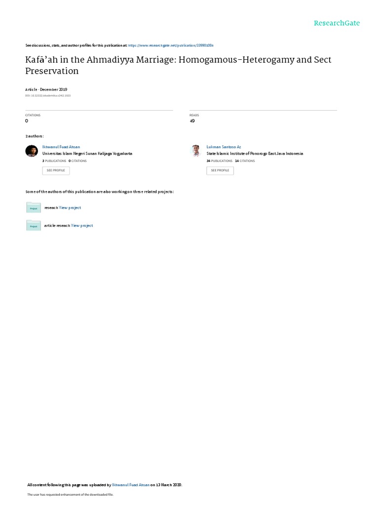 Kafah in The Ahmadiyya Marriage: Homogamous-Heterogamy and Sect ...