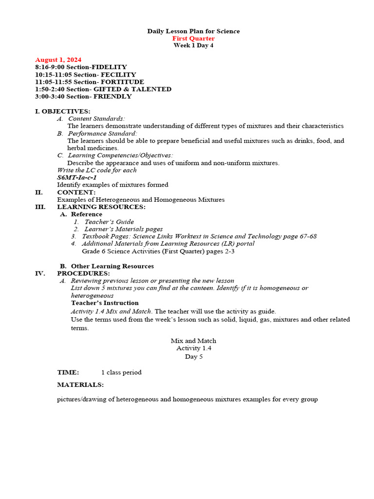 Quarter1 Lesson4-Week4 | PDF | Mixture | Homogeneity And Heterogeneity