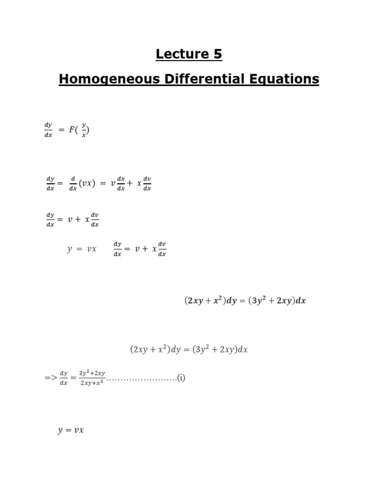 SOLUTION: Lecture5 homogeneous differential equations - Studypool