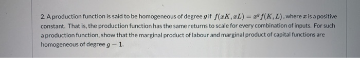 Solved 2. A production function is said to be homogeneous of | Chegg.com