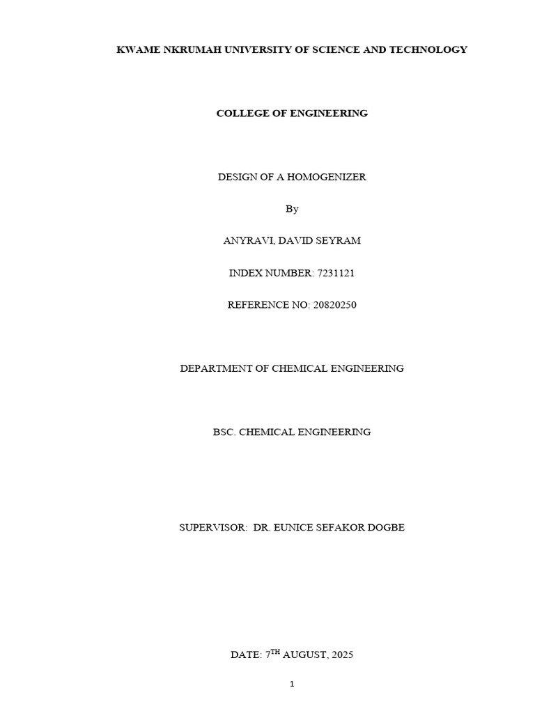 Homogenizer Design - Anyravi David Seyram 7231121 | PDF | Emulsion ...