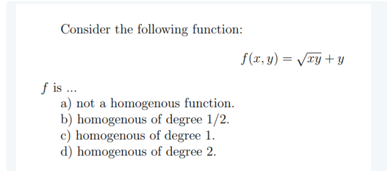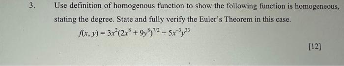 Solved A homogeneous function is one such that | Chegg.com