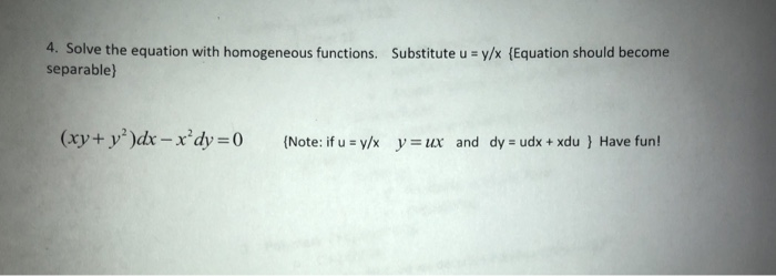 Solved 4. Solve the equation with homogeneous functions. | Chegg.com