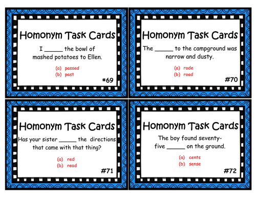 Homographs and Homonyms Task Cards – Semantics Task Cards – Top ...