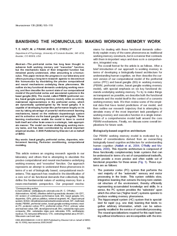 (PDF) Banishing the homunculus: making working memory work