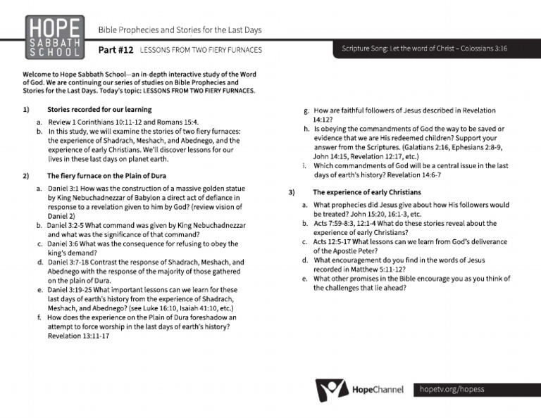 Hope Sabbath School Lessons Copy - 1 | PDF