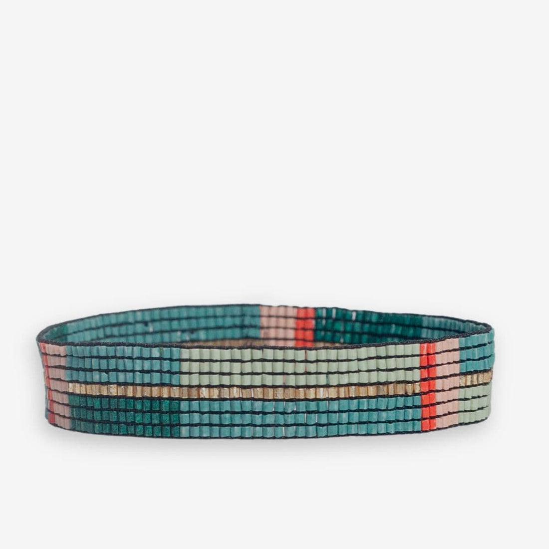 Alex Horizontal Colorblock Beaded Stretch Bracelet Teal + Poppy – INK ...