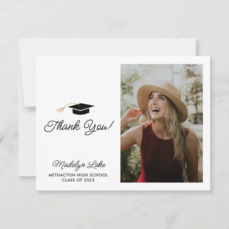 Modern Horizontal Graduation Photo Thank You Note Card | Zazzle