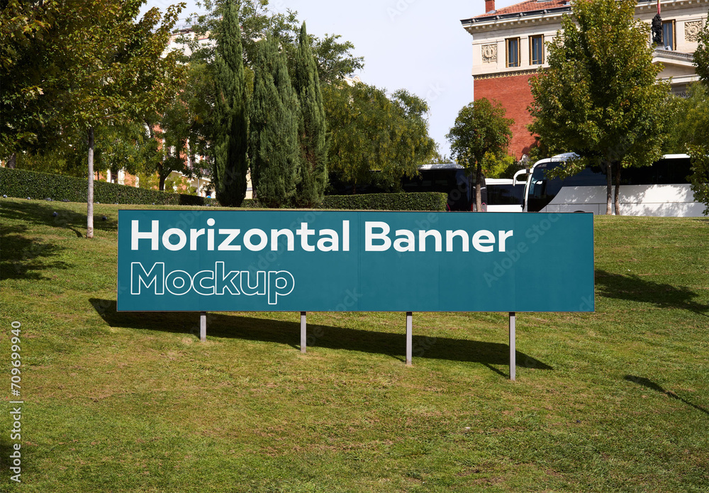 Mockup of customizable horizontal sign on grass Stock Template | Adobe ...