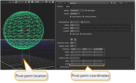 The pivot point and the rotation axis of the scene are shown in both 3D ...