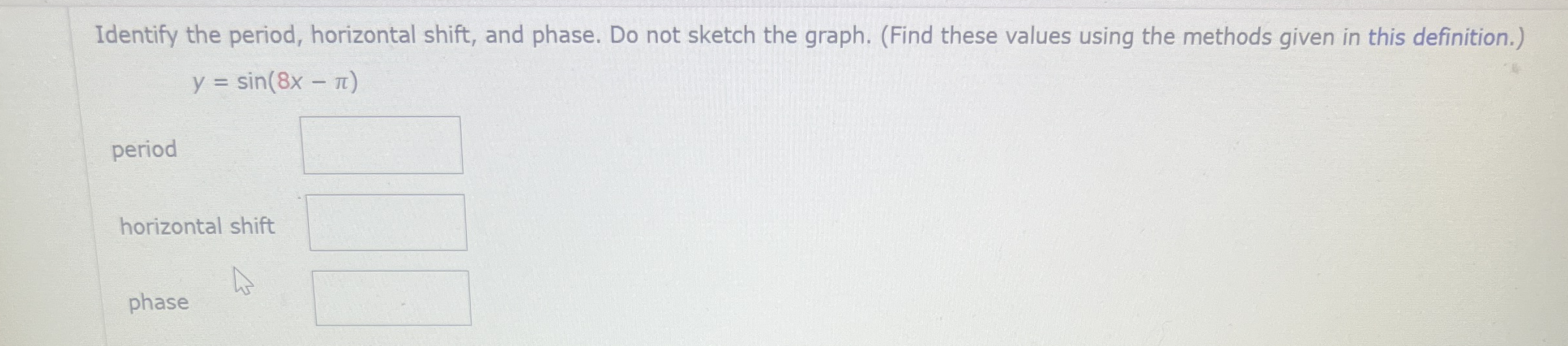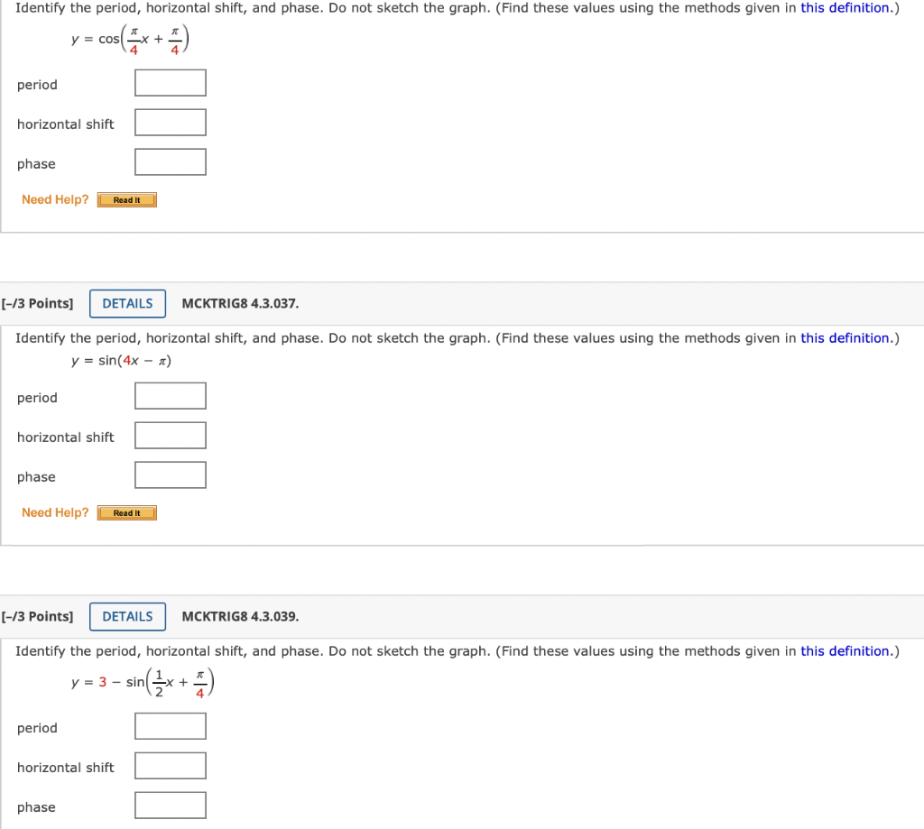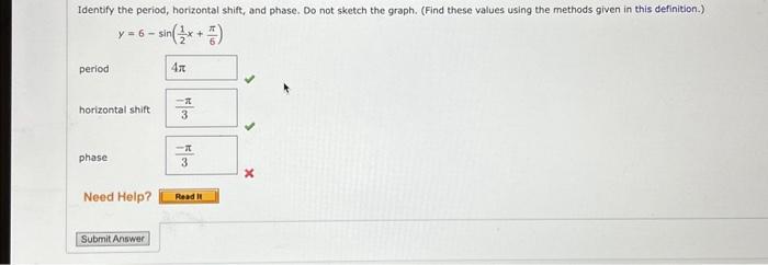 Solved Identify the period, horizontal shift, and phase. Do | Chegg.com
