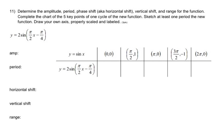 Solved 11) Determine the amplitude, period, phase shift (aka | Chegg.com