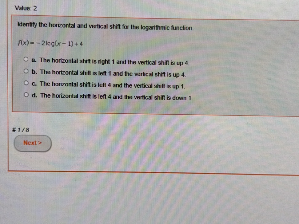 Solved: Which value represents a horizontal shift (left and right) in ...