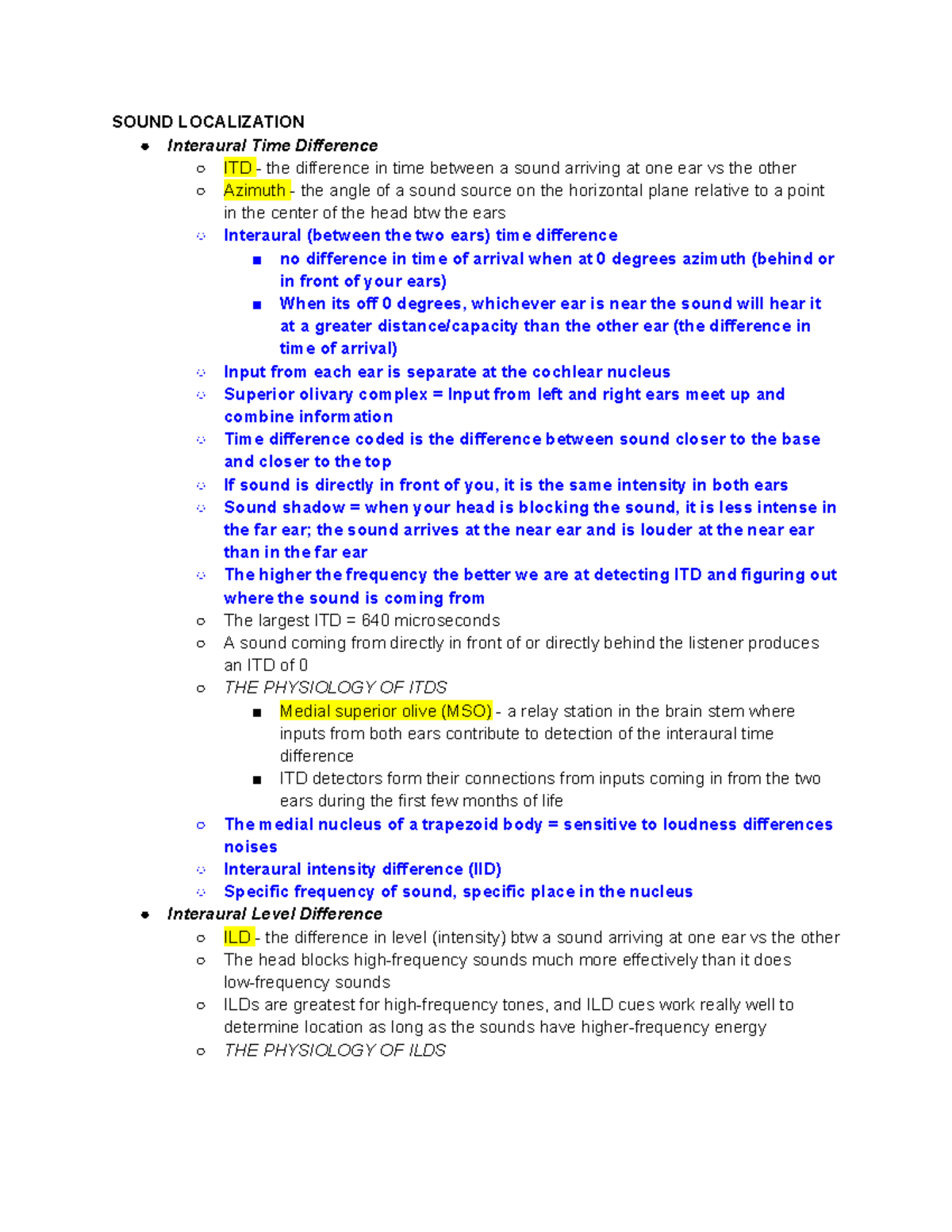 Perception Lecture Notes: Auditory Pathways and Sound Localization