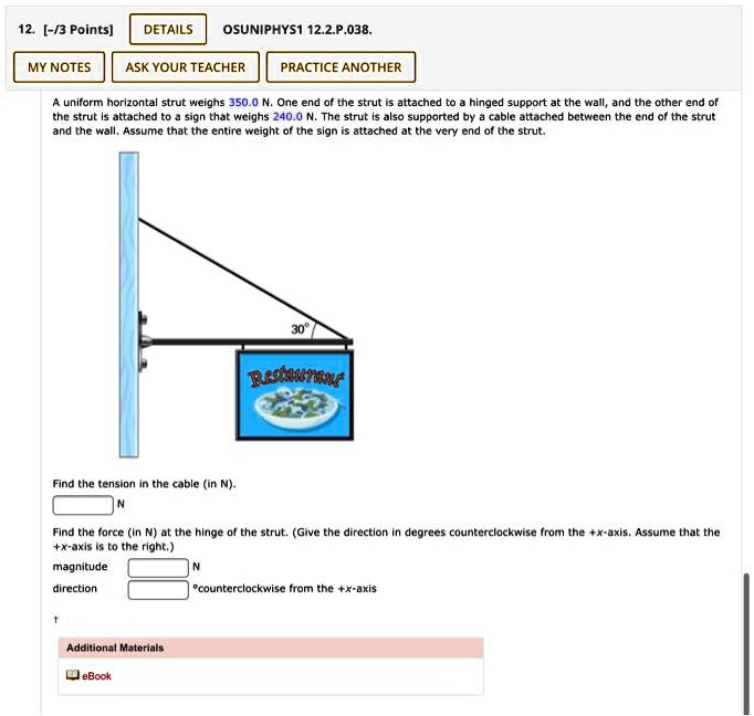 SOLVED:12 [-/3 Points] DETAILS OSUNIPHYS1 12.2.P,038. MY NOTES ASK YOUR ...