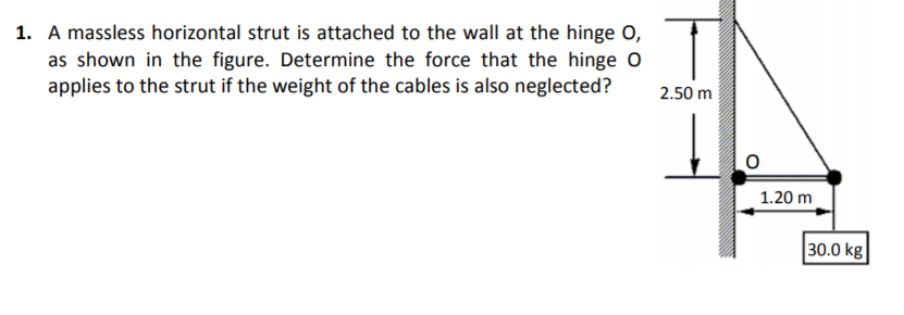 Solved 1. A massless horizontal strut is attached to the | Chegg.com