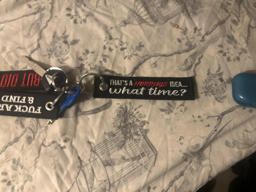That's a Horrible Idea What Time Keychain Embroidered Fabric Key Tag ...