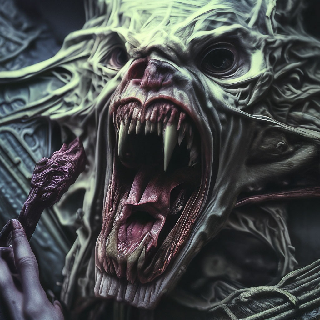 "Ugly art, horror art, disgusting, high detail, peeks out of the dark ...