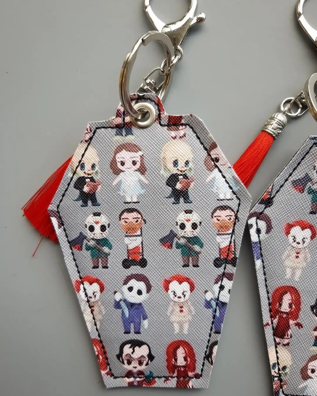 Coffin Shaped Vinyl Keychain - Chibi Horror Characters - Gray - Etsy