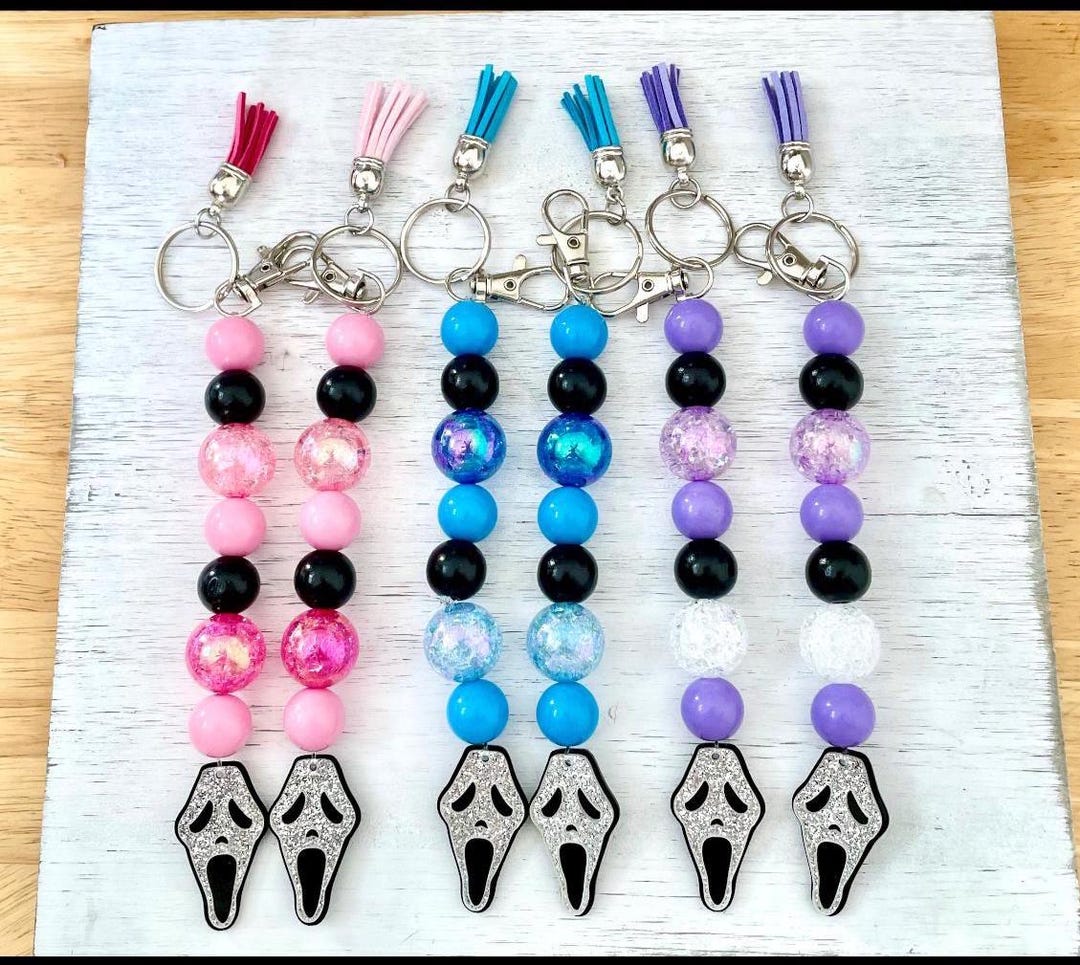 Horror Ghost Keychain - Horror Movie Key Ring - Pastel Halloween Beaded ...