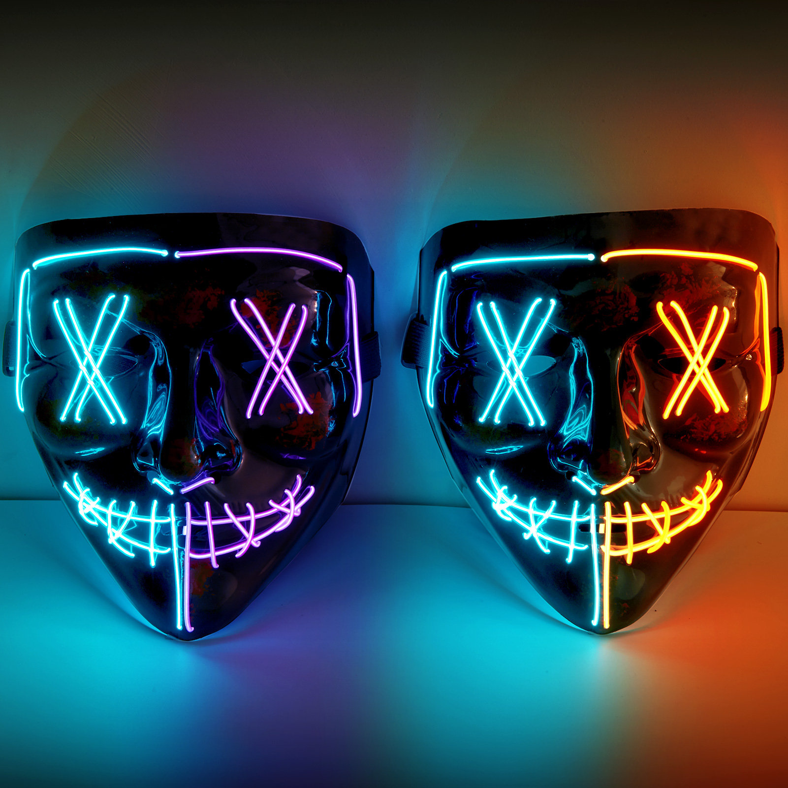 Led Luminous Halloween Party Mask Neon Glow Purge Horror Costume ...
