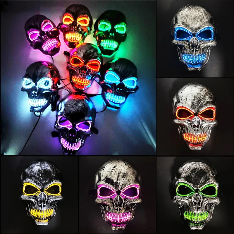 New Halloween Horror Skull Mask Led Cold Light Mask For Halloween Glow ...