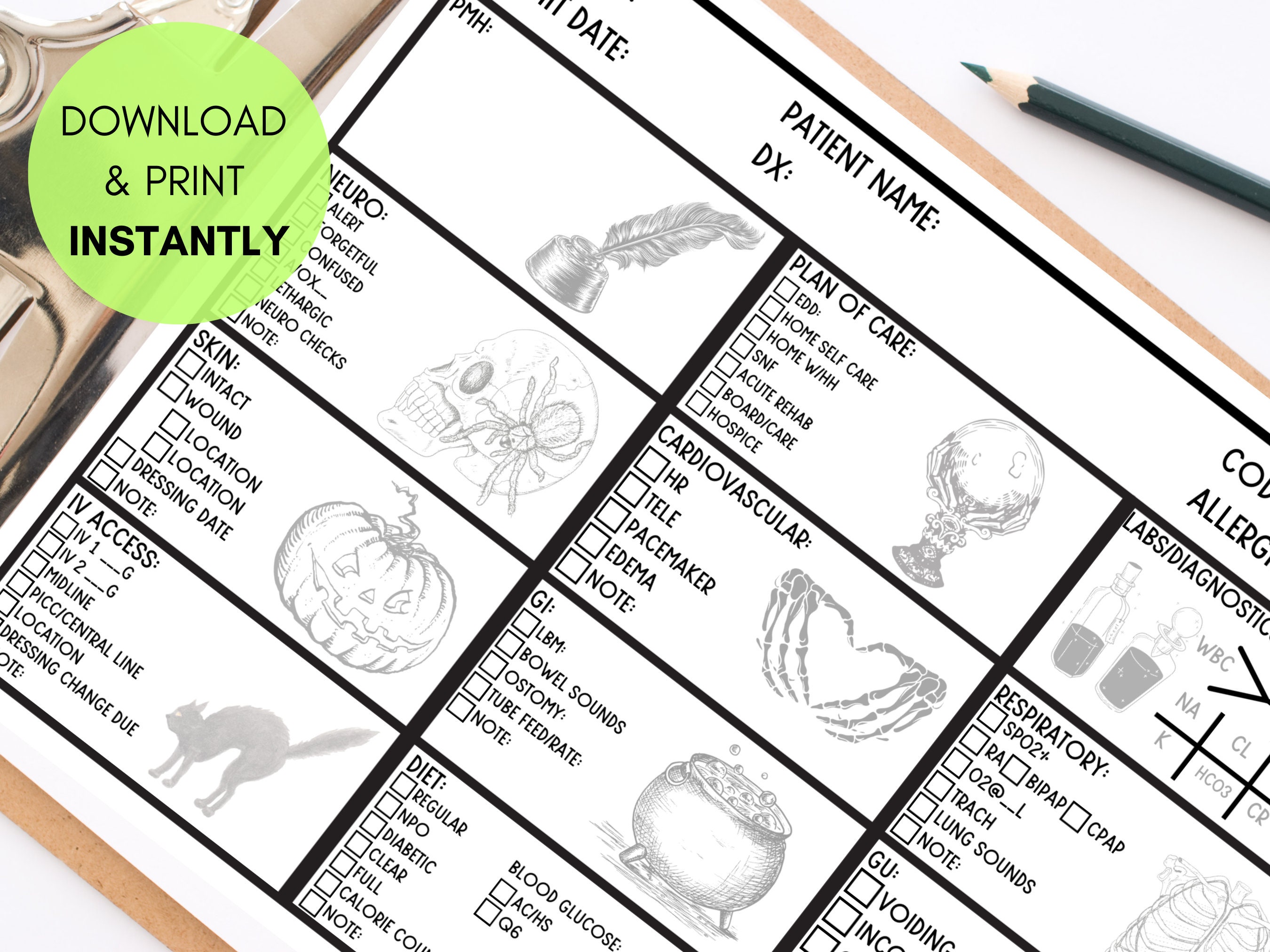 1 Patient Nurse Report Printable + Spooky Halloween Graphics, SBAR RN ...