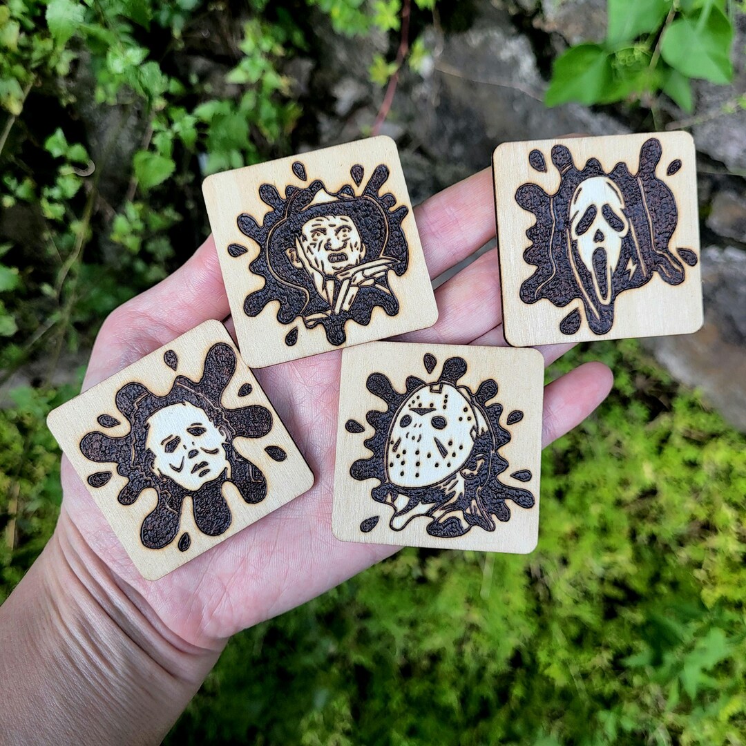 Made-to-order. Hand Wood Burned Classic Horror Movie Icons Magnet Set ...
