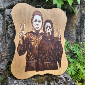 Hand Wood Burned Halloween and Scream Wall Hanging. Pyrography. Michael ...