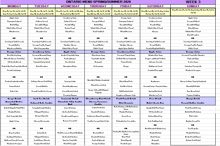 Sunnycrest Dining: 2020 Spring/Summer Menu